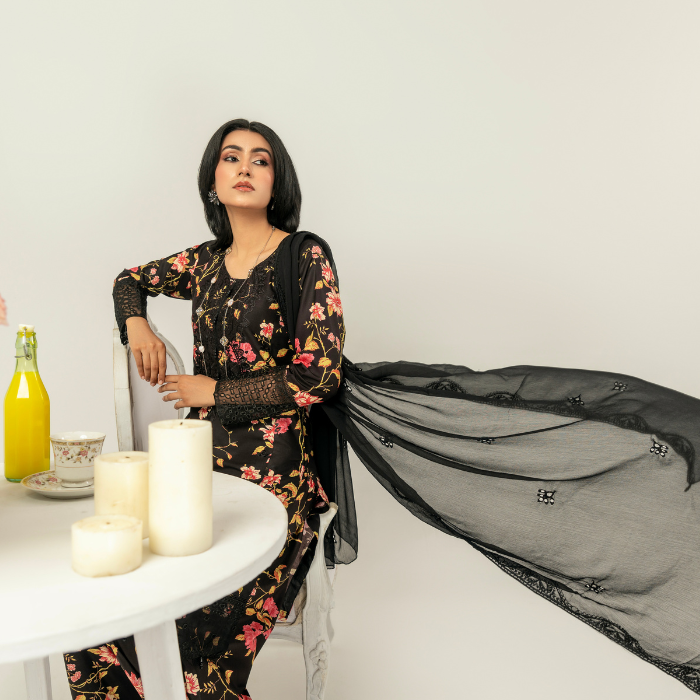 • Pieces: 3-piece stitched suit (shirt, trouser, dupatta).